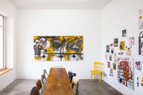 Acryl und Vinylfarbe auf Nessel, Tempera ,