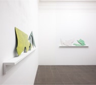 Nun heißt es, die beidseitig bemalten Stücke zu gruppieren und zu ordnen. Da sie selbstverständlich gleichwertig sind, fällt dem jeweiligen Raum die Rolle zu, sie als Ensemble zur Geltung zu bringen. Sie lassen sich entweder auf einem flachen Display nebeneinander auslegen, an einer Wand neben- und übereinander hängen oder aber ringsum auf mehreren Simsen platzieren. Jede Anordnung im Raum bringt eine spezifische Aussage und Auslegung dessen hervor, was den einzelnen Stücken und dem Ensemble insgesamt inhärent ist. Unter Augenhöhe lose gegen die Wand gelehnt, ermöglicht es, mehrere Stücke so vor- und hintereinander zu stellen, dass sich Segmente überschneiden. Dies lässt an Sauls mehrschichtige Papierarbeiten denken, insbesondere, wenn man hinzurechnet, dass bei den Reliefs auch die leeren, weißen Wandflächen einen entscheidenden Part als erweiterte Räumlichkeit spielen. Zudem werfen sie Schatten und durch das Überlappen kommt es zu weiteren freien Konfigurationen, die teilweise gegenständliche Assoziationen zulassen. Auch emotionale Situationen wie Gespräche miteinander, Kämpfe gegeneinander oder in sich ruhende Positionen kann der Betrachter herauslesen, denn diese Art der Aufstellung gewährt eine direktere körperliche Nähe als andere denkbare Anordnungen im Raum.