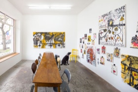 Acryl und Vinylfarbe auf Nessel, Tempera ,