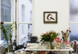 Acryl und Vinylfarbe auf Nessel , 60 x 50