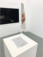 Claudia Kallscheuer ist gelernte Damenschneiderin und studierte im Anschluss Modedesign und Malerei. Ihre Liebe zum Textilen und Handwerklichen, die in ihren Installationen, Objekten und Wand-arbeiten zu spüren ist, bildet einen wesentlichen Bestandteil ihres Werkes. Darin thematisiert sie Alltagsbeobachtungen wie die Wetterlage, Telefonate oder Begegnungen, von Hand gestickt auf Stoffe, Sessel oder auch Teebeutel.